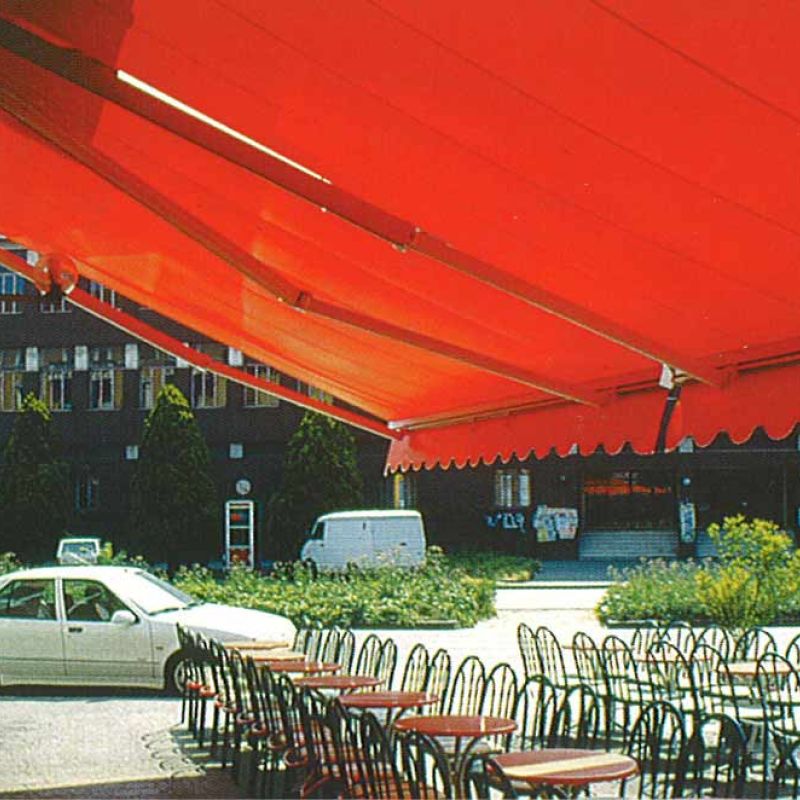 NEW en 2022 : modèles de stores à bras SPAZIO avec bras à câbles gainés et barre de chute avec volant enroulable intégré, sur demande (modèles DIM jusqu’à épuisement du stock).